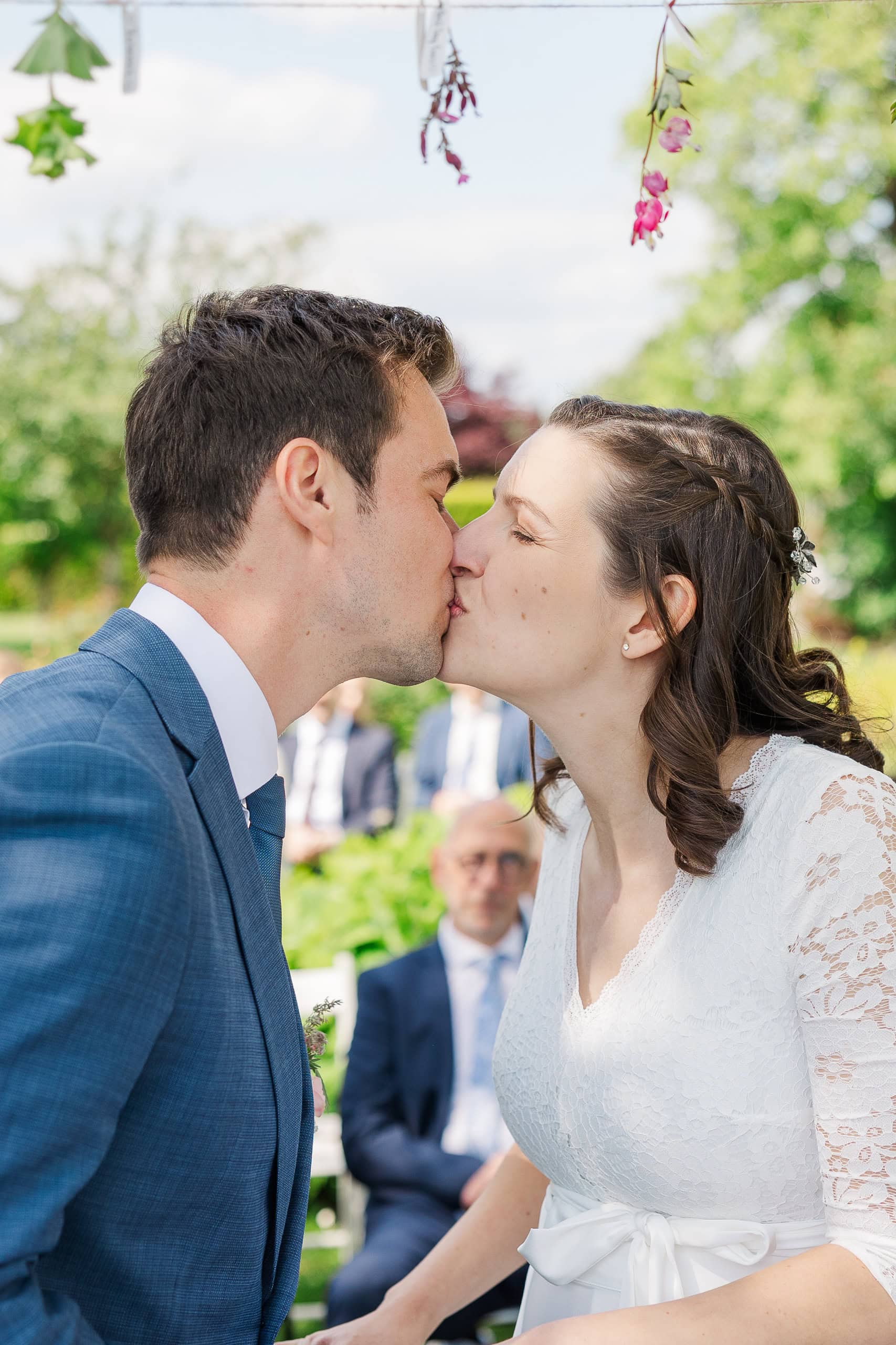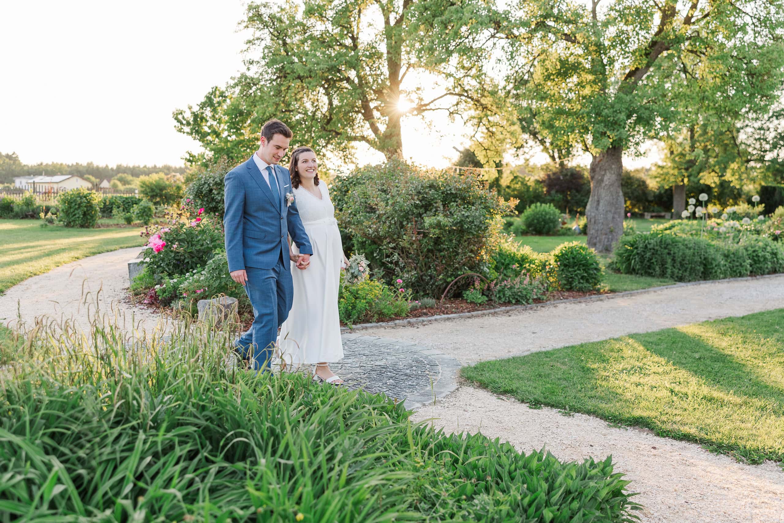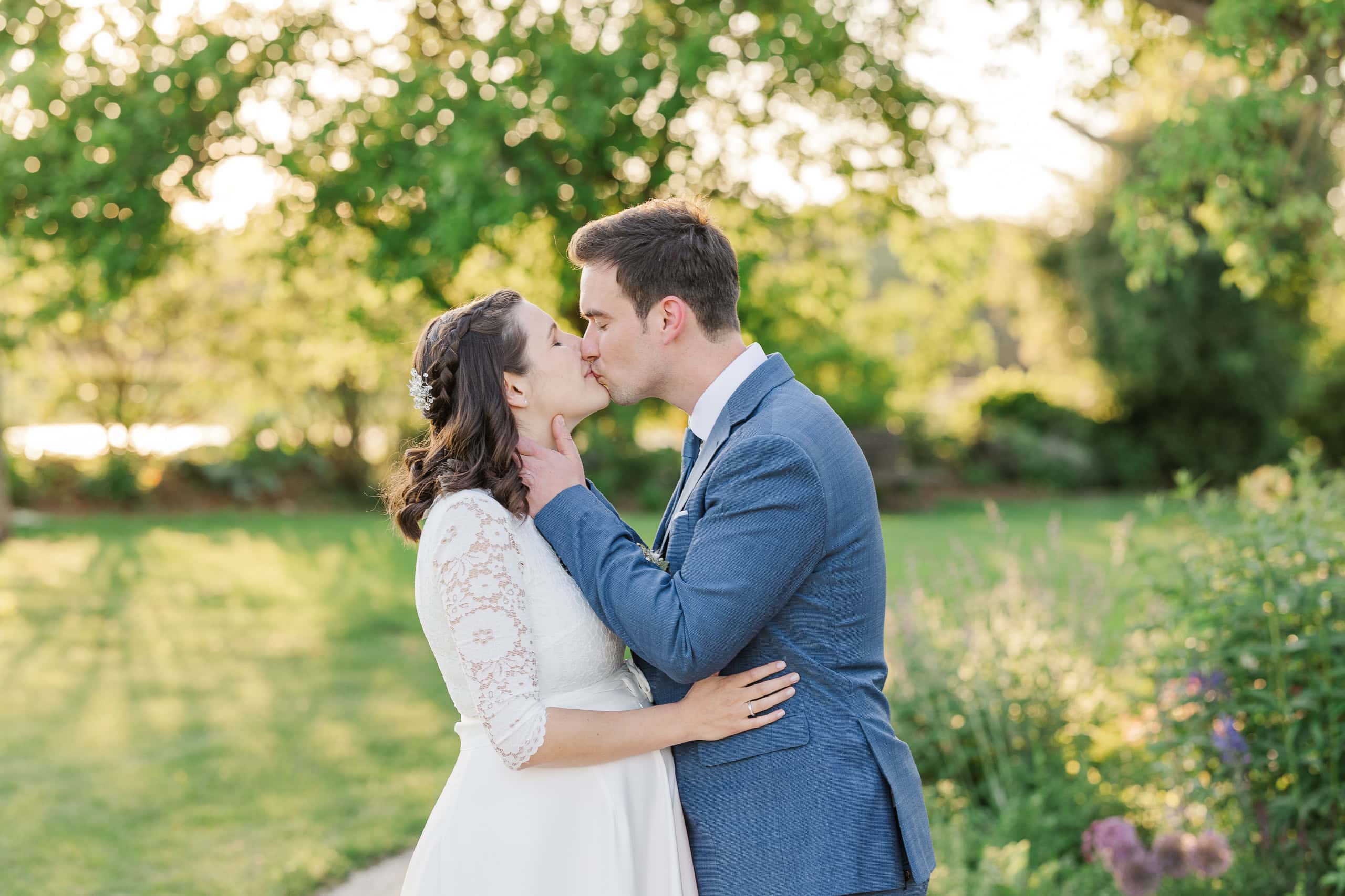 Das Paarshooting fand statt, bevor die ersten Gäste eintrafen – eine bewusste Entscheidung von Lisa und Simon, die sich ausgezahlt hat. Wir hatten den gesamten Garten für uns: keine Hektik, kein Zeitdruck, nur die beiden und die Natur.