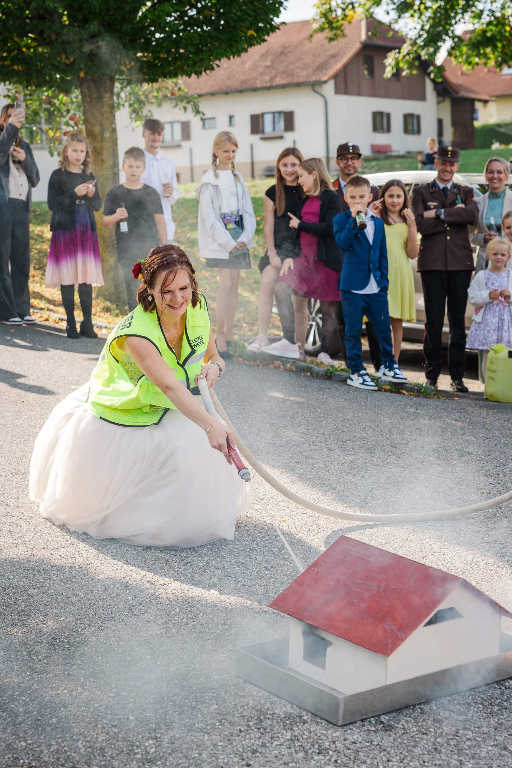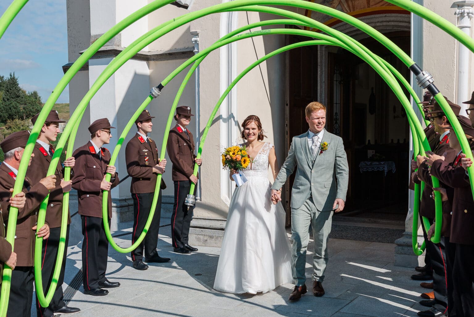 Da Daniel bei der freiwilligen Feuerwehr aktiv ist, waren entsprechend viele Kameraden unter den Gästen. Das hat die Stimmung beim Auszug aus der Kirche besonders gemacht – laut, herzlich und voller Energie.