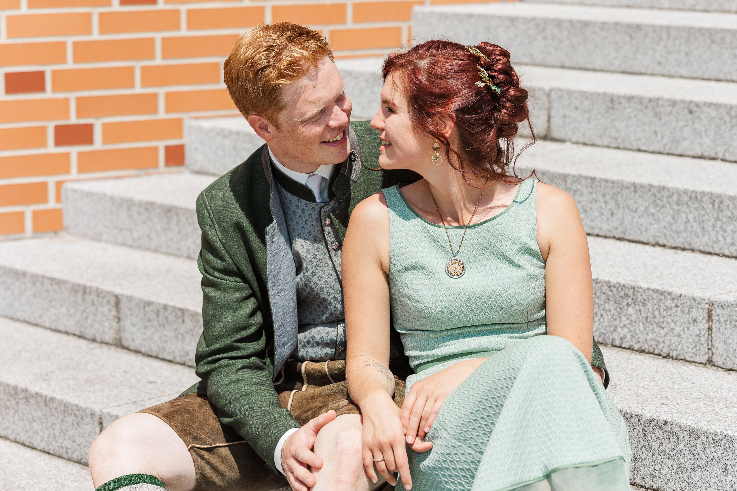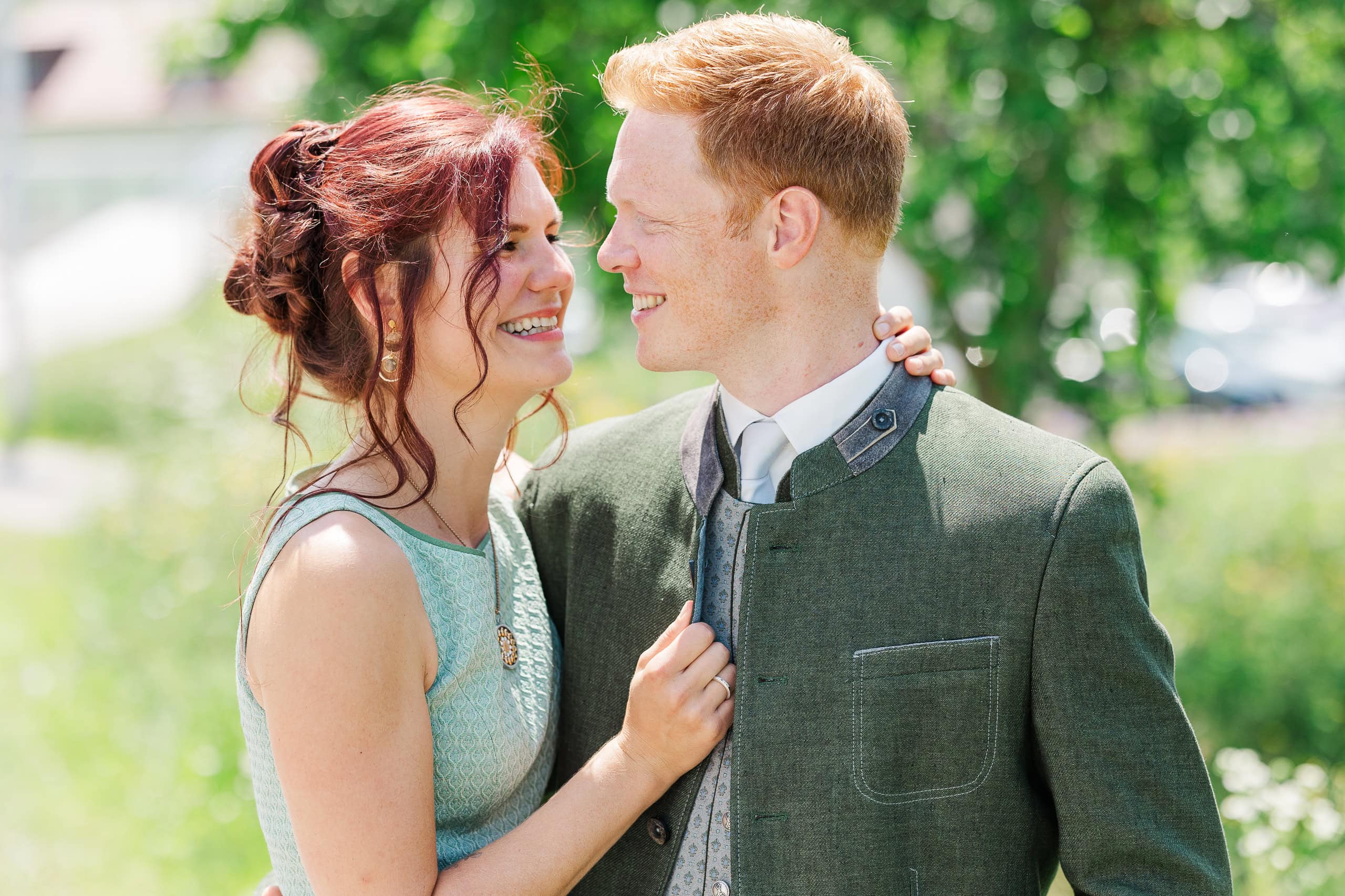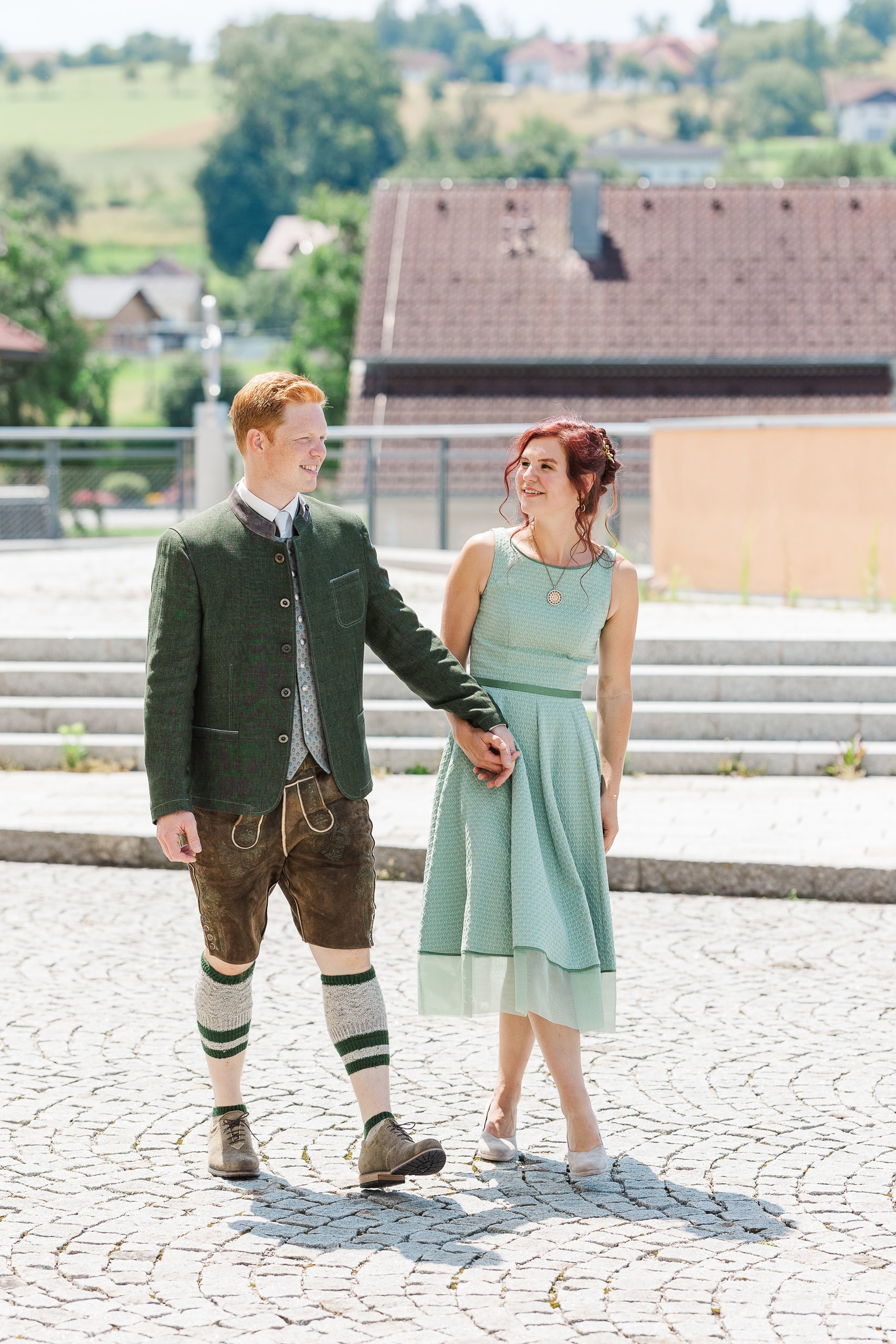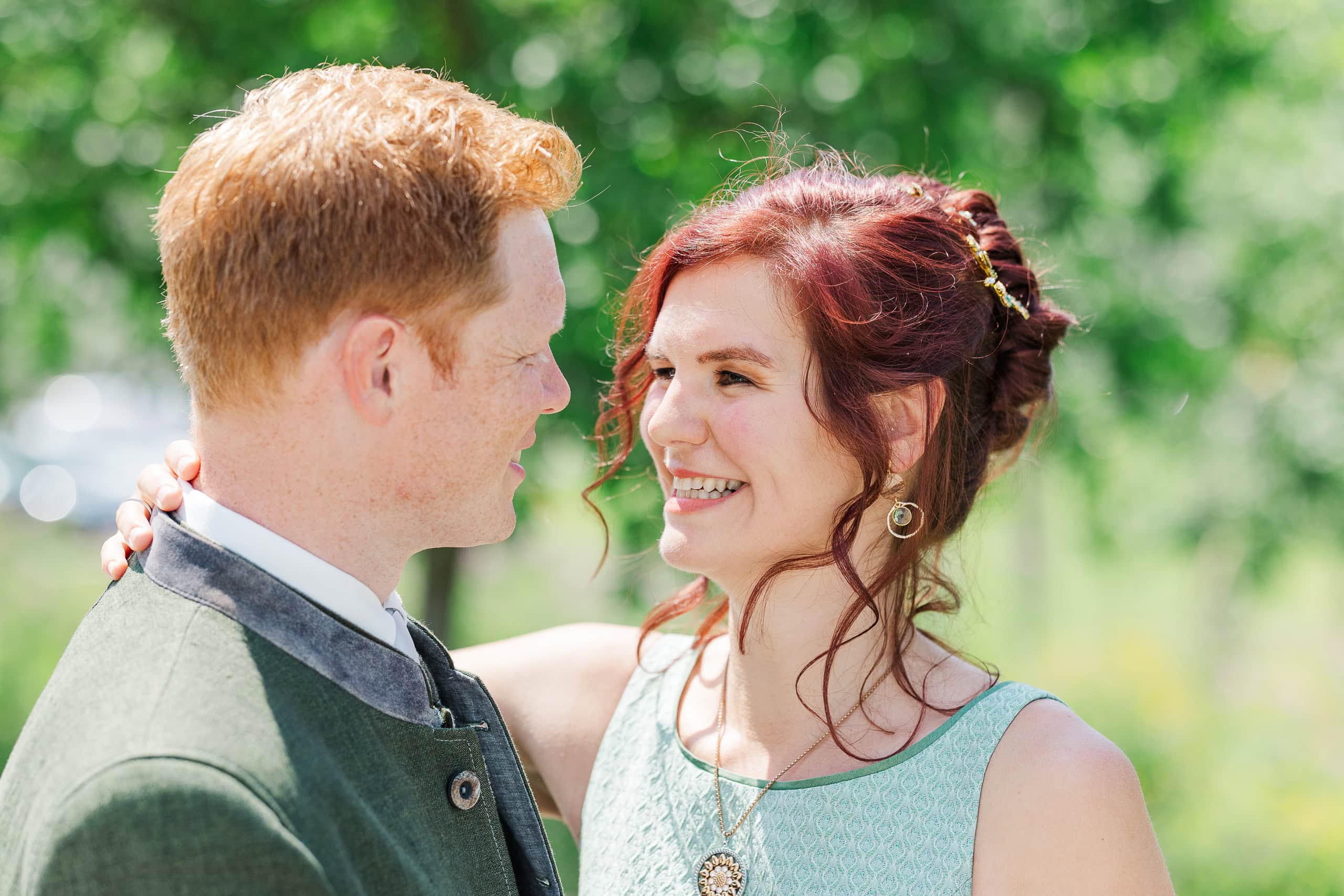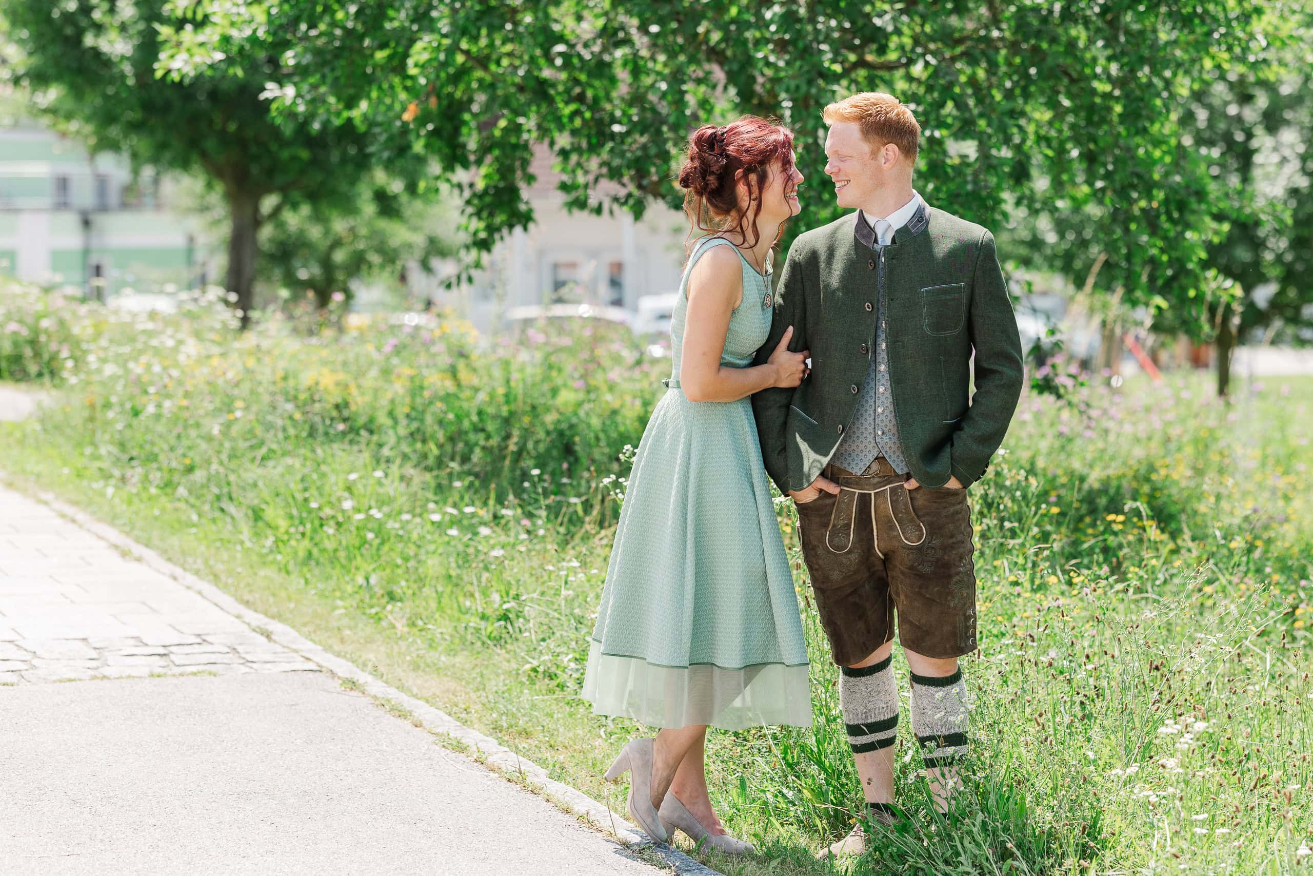 Für die Paarfotos haben wir die Umgebung rund um St. Marienkirchen genutzt. Margret und Daniel in ihren Trachten, die Sommerlandschaft des Hausruckviertels im Hintergrund – das hat einfach gepasst. Die beiden waren von Anfang an locker vor der Kamera und haben mir das Fotografieren leicht gemacht.